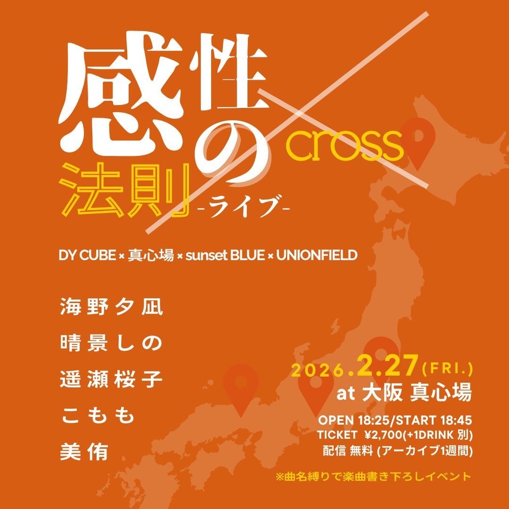 感性の法則 cross -ライブ- SCHEDULE 2026/02/27(金) LIVE&BAR 真心場 - M A H O R O B A - 地図を表示 OPEN18:25 / START 18:45 遥瀬桜子 /海野夕凪 / 晴景しの /こもも / 美侑 TICKET ¥2,700 ご予約(お取り置き) URLをコピーする 報告する