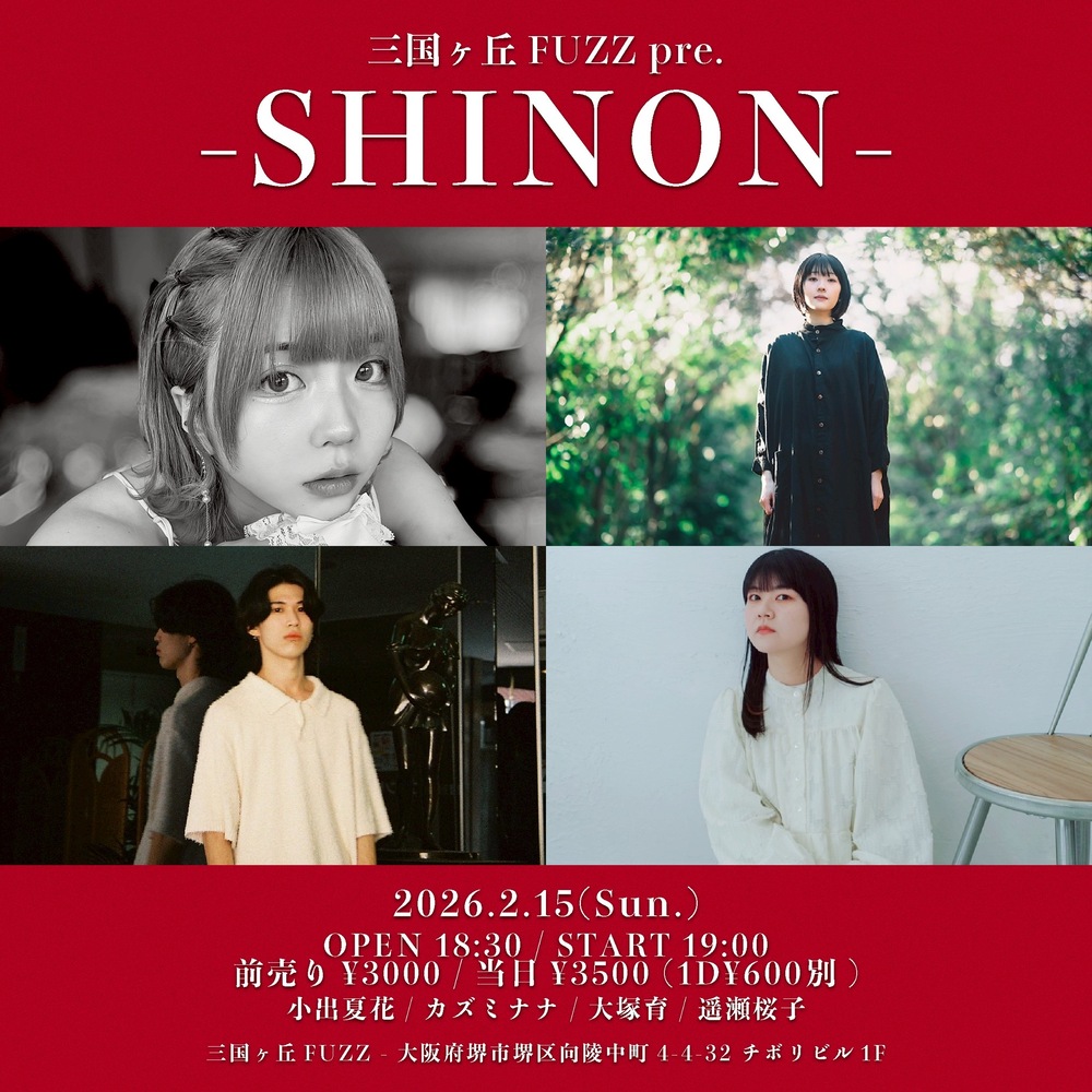 三国ヶ丘FUZZ Pre. -SHINON- SCHEDULE 2026/02/15(日) 三国ヶ丘FUZZ 地図を表示 OPEN 18:30 / START 19:00 遥瀬桜子 / 大塚育 / カズミナナ / 小出夏花 ADV ¥3,000 / DOOR ¥3,500 https://sakuttomato.bitfan.id/q/3847 URLをコピーする 報告する